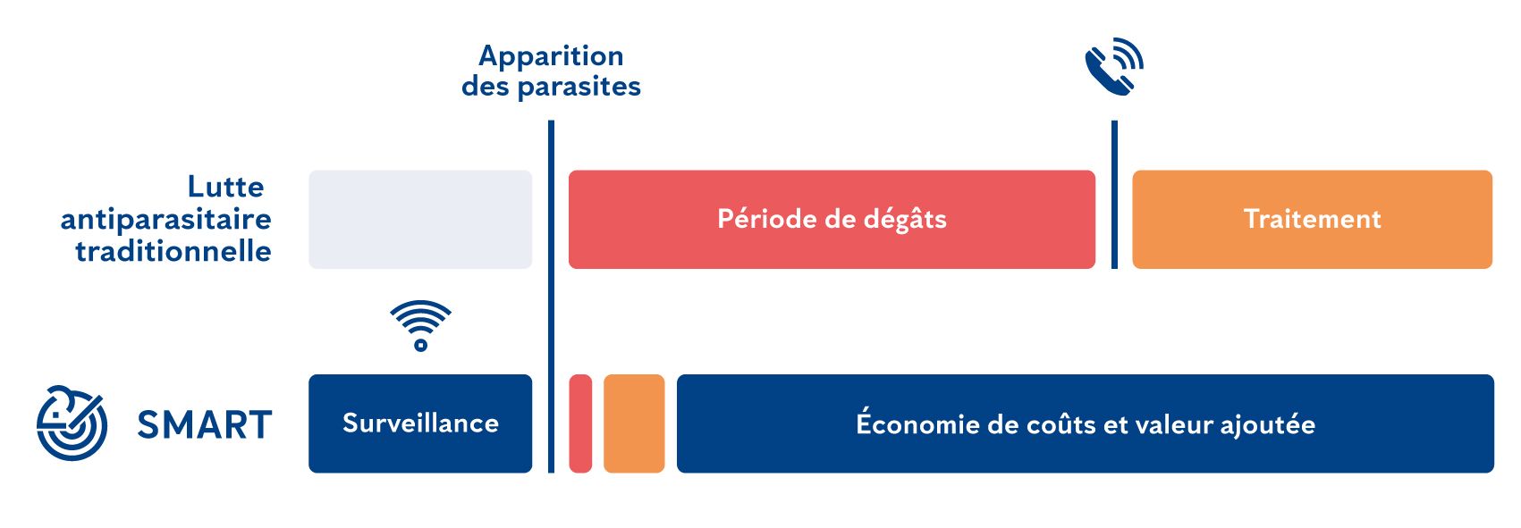 Notre approche s’inscrit dans une volonté de réduction globale de l’empreinte écologique du secteur. En effet, le traitement précoce et non systématique des infestations permet de :